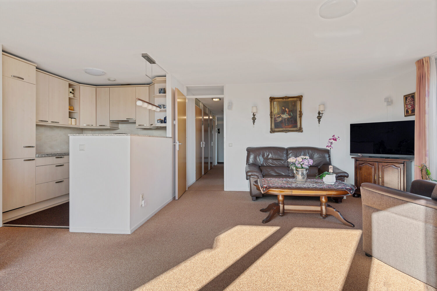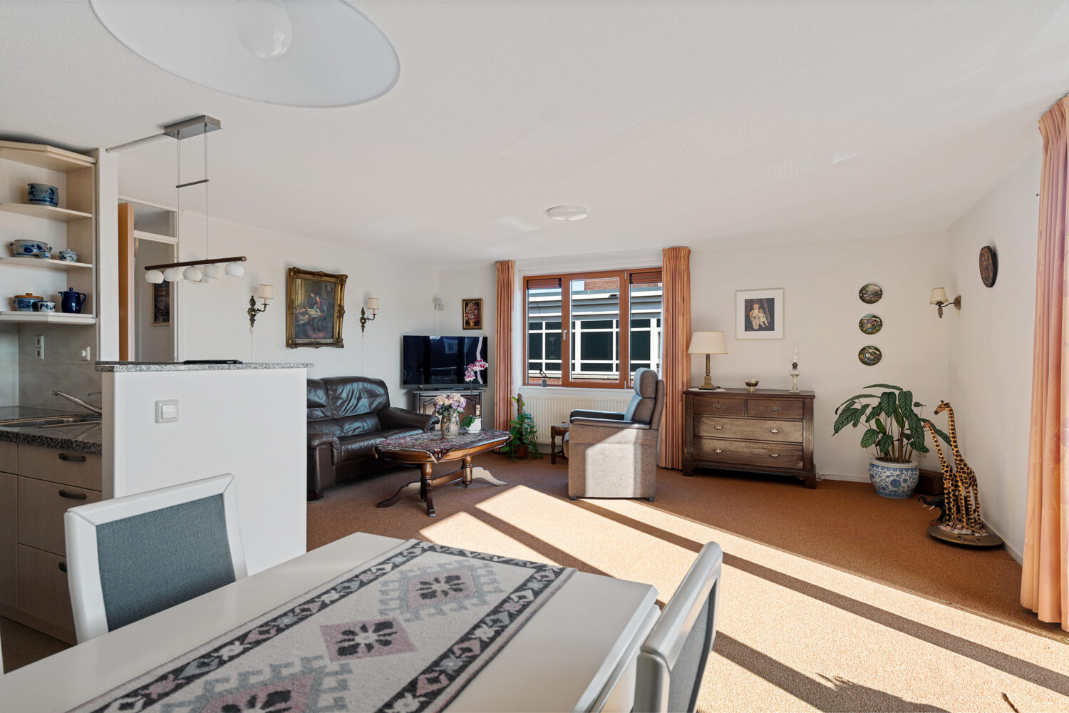 De woonkamer is royaal opgezet en heerlijk licht dankzij de grote raampartijen. Vanuit de woonkamer kijk je uit over het levendige plein, waardoor er altijd iets te zien is en er tegelijkertijd veel daglicht naar binnen valt. De woonkamer vormt het hart van het appartement en biedt volop ruimte voor een comfortabele zithoek en een gezellige eethoek.