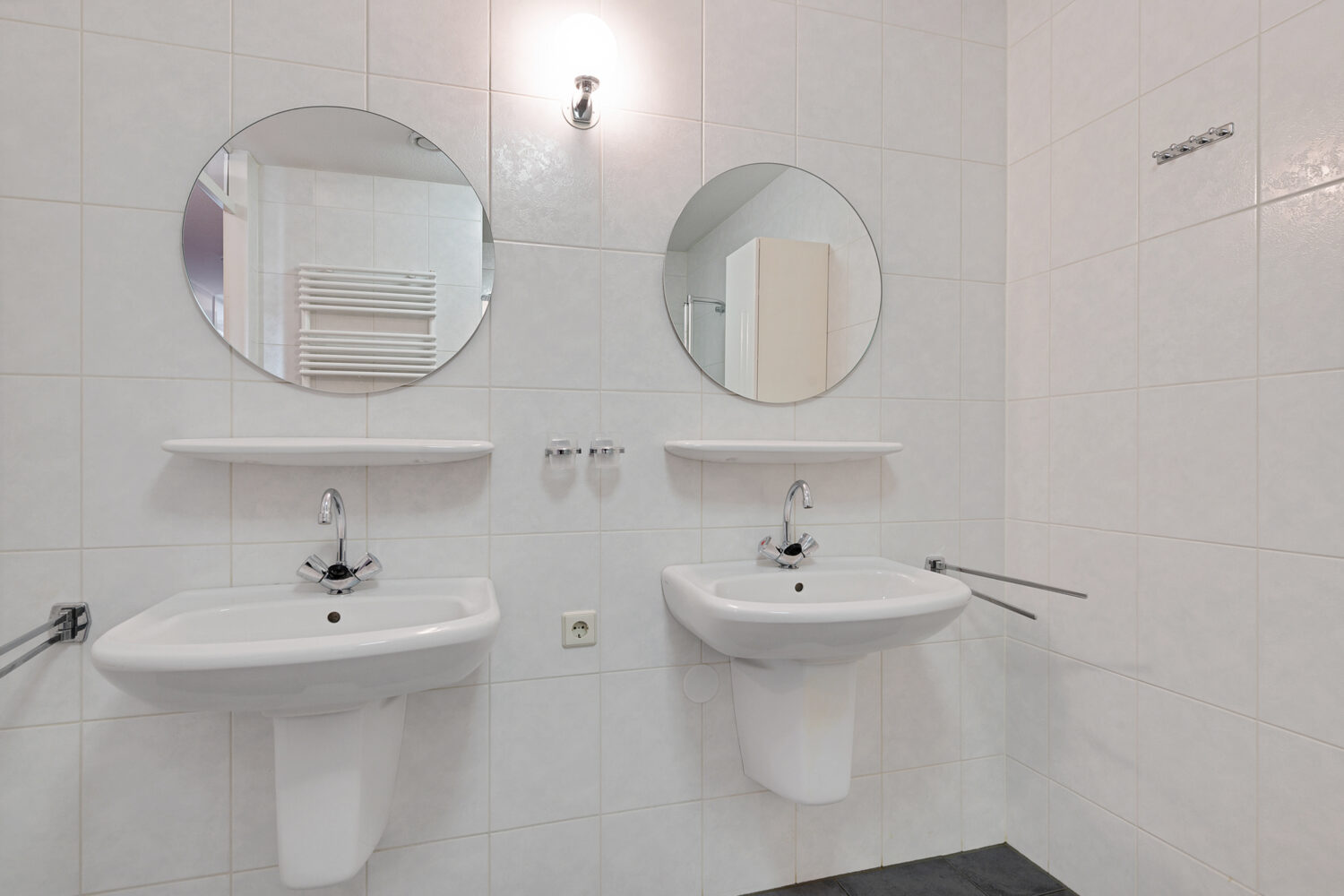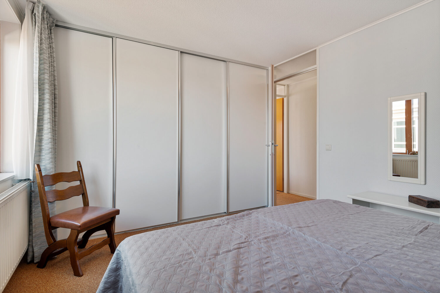 Verder beschikt het appartement over twee slaapkamers, beide voorzien van een vaste kastenwand. Deze kamers zijn ideaal te gebruiken als hoofdslaapkamer, logeerkamer of bijvoorbeeld als werk- of hobbyruimte. De badkamer is netjes uitgevoerd en beschikt over twee wastafels en een ruime douche. Daarnaast is er een separaat toilet en een praktische ruimte voor de wasmachine en droger, evenals de opstelling van de cv-installatie.